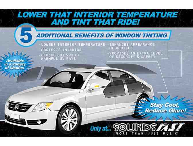 Certificate valid for 1 Ceramic window film has a far higher heat rejection over standard film. Lowers interior temperatures on hot days, blocks out 99% of harmful UV rays. Takes far less time for your interior to cool down in the summer. Lifetime warranty. This covers all vehicles EXCEPT for multi window vans and RV's. Retail value $599, no cash value, valid at Sounds Fast Bend Oregon only