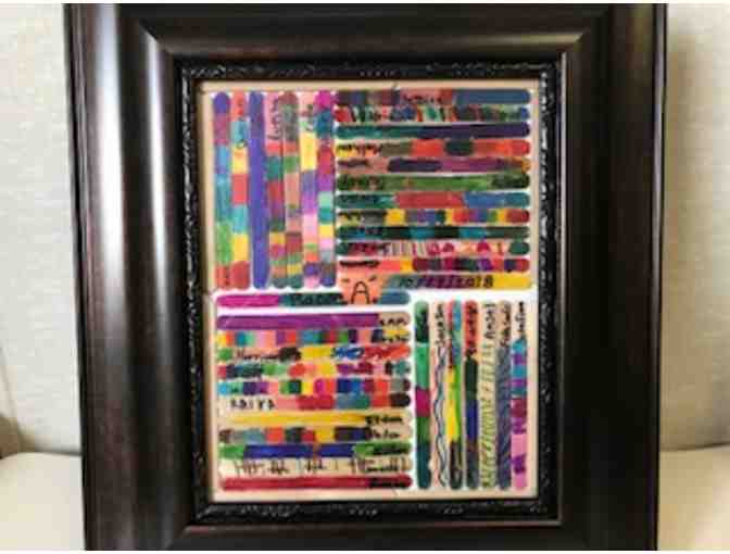 Room A created a beautiful framed art piece made of beautifully painted popsicle sticks.