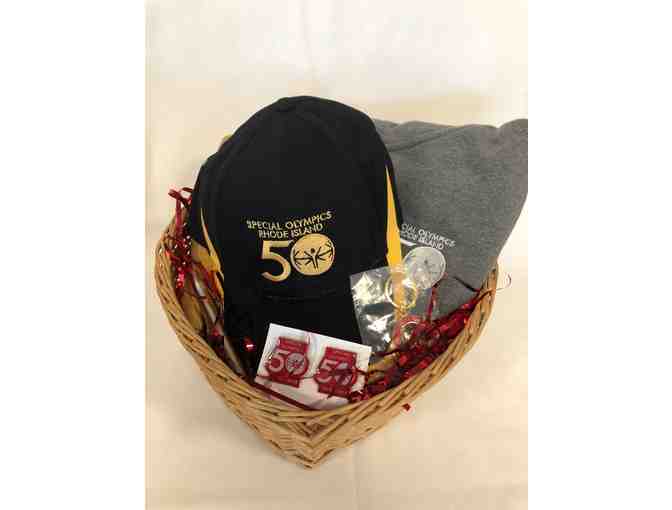 Special Olympics Rhode Island is celebrating 50 years this year! This gift basket for includes exclusive Special Olympics Rhode Island 50th Anniversary merchandise: