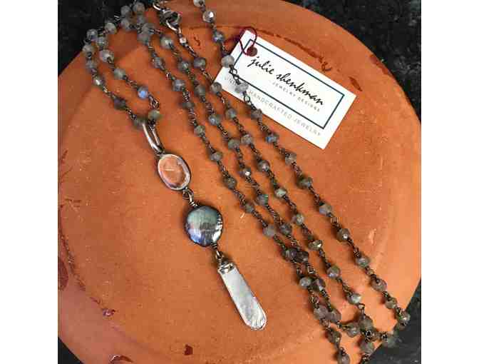 Necklace-silver-Grey abalone,coin pearl,quartz,labradite hand-wired on sterling silver