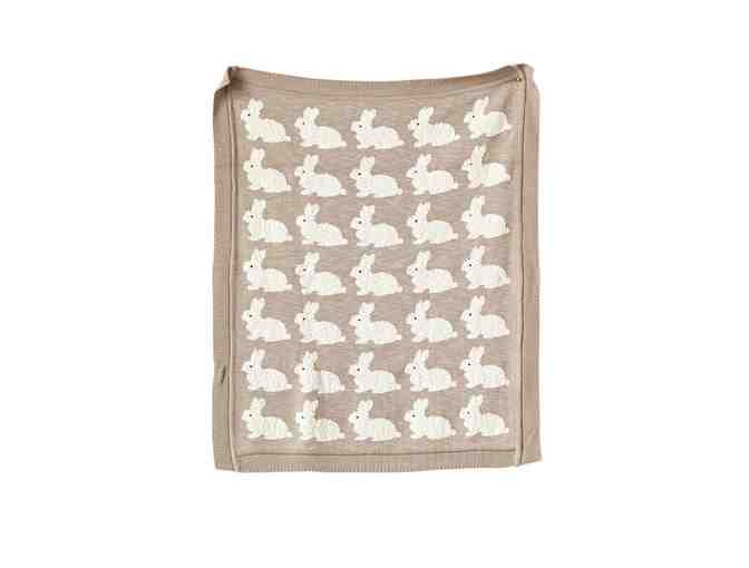 Covered with bunnies, the Gray Knit Blanket with Rabbit adds a touch of visual charm to your kid's room, reading nook, or favorite arm chair. This knit blanket showcases a stretchy knit design and is made from breathable cotton fibers. It's machine-washable and can be tossed in the dryer, making maintenance a snap.