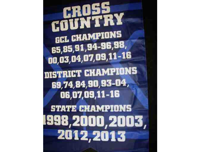 Bomber cross country fans will appreciate the significance of owning this 2016 banner. Measuring 4'5" x 7'3", it has been displayed in the St. X gym and commemorates the following championships: GCL Champions 1965, 1985, 1991, 1994-1996, 1998, 2000, 2003, 2004, 2007, 2009, 2011-2016; District Champions 1969, 1974, 1984, 1990, 1993-2004, 2006, 2007, 2009, 2011-2016; State Champions 1998, 2000, 2003, 2012, 2013