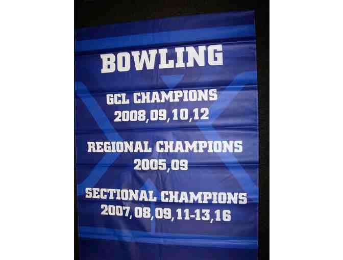 Bomber bowling fans will appreciate the significance of owning this 2016 banner. Measuring 4'5" x 7'3", it has been displayed in the St. X gym and commemorates the following championships: GCL Champions 2008, 2009, 2010, 2012; Regional Champions 2005, 2009; Sectional Champions 2007, 2008, 2009, 2011-2013, 1016.