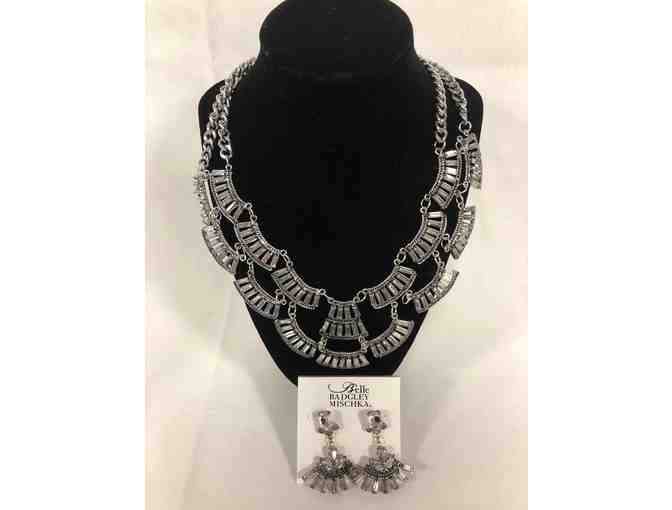 This set includes a geometric curve necklace & crystal earrings. A great statement piece!