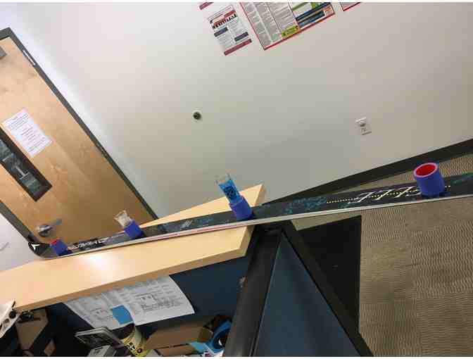 Custom made shotski allows you to insert shot glasses and replace with clean glasses for easy use and speed. Fabricated and machined with high-end materials and parts, this shotski is ready to get the party started. Included with this auction is a fine bottle of "Breaking & Entering" American Whiskey by ST. George Spirits.