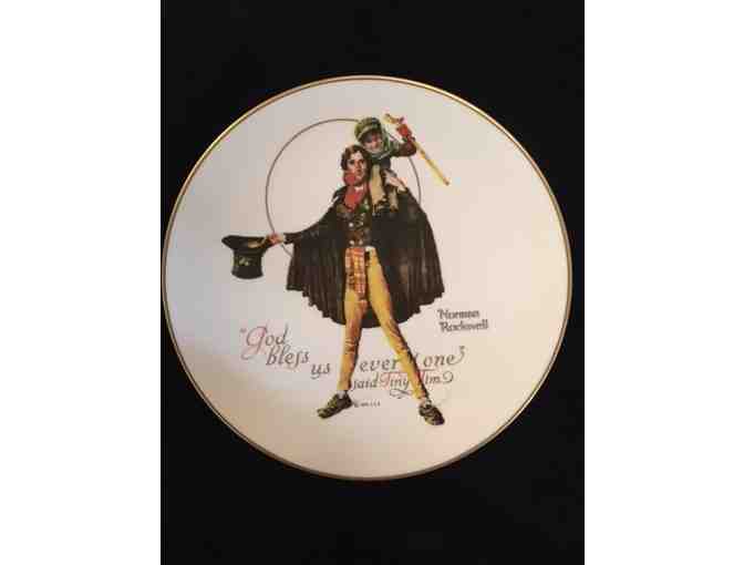 A wonderful Christmas keepsake, this plate is a limited edition Rockwell plate entitled Tiny Tim from the 1974 issue of the the annual collector's Christmas Series by Gorham. It captures the cover illustration from the Saturday Evening Post published December 15, 1934.
