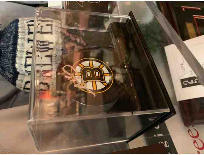 Before his recent trade to the New York Rangers, former Bruins defenceman Adam McQuaid signed a few last Bruins' pucks, and we got one! It could be your's...happy Bidding!