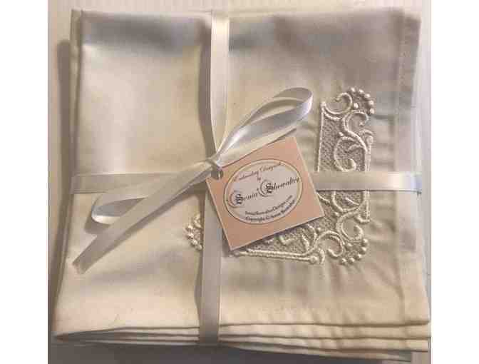 You are bidding on: Six Cloth Napkins (14"x14") Machine embroidered by Pam Franceschi. White with white embroidery