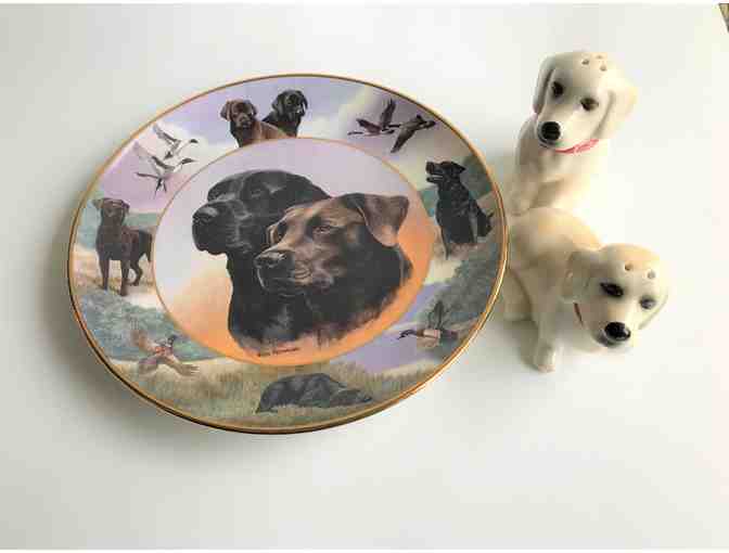 Royal Doulton Friends in a Field Nigel Hemming limited edition, Fine Bone China Decorative Plate and Dog salt and pepper shakers