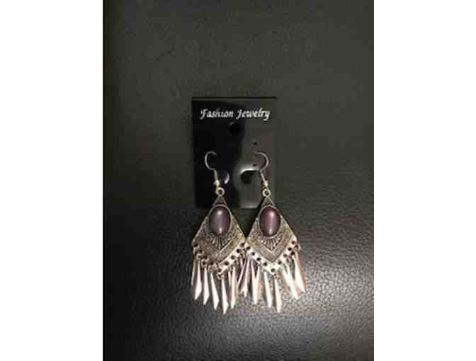 Silver drop earrings with purple stones