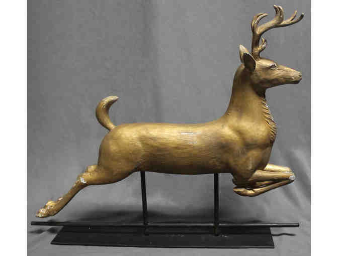 Bid now to win this beautiful gold reindeer on an iron stand. It is the perfect addition to your home.