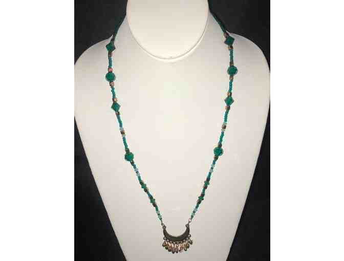 A beautiful handmade necklace and set of 8 note cards designed by Special Olympics Rhode Island athlete and artist, Rachel Rasnick.   Rachel represented Special Olympics RI at the 2018 USA Games in Seattle competing in swimming and winning a Silver Medal, Bronze Medal and a 5th Place Ribbon.