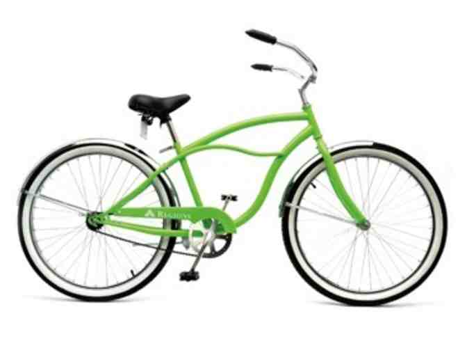 Bid now on the classic Regions cruiser! It is fitted with a comfortable seat and chrome fenders. It's painted custom "Regions green" with whitewall tires.