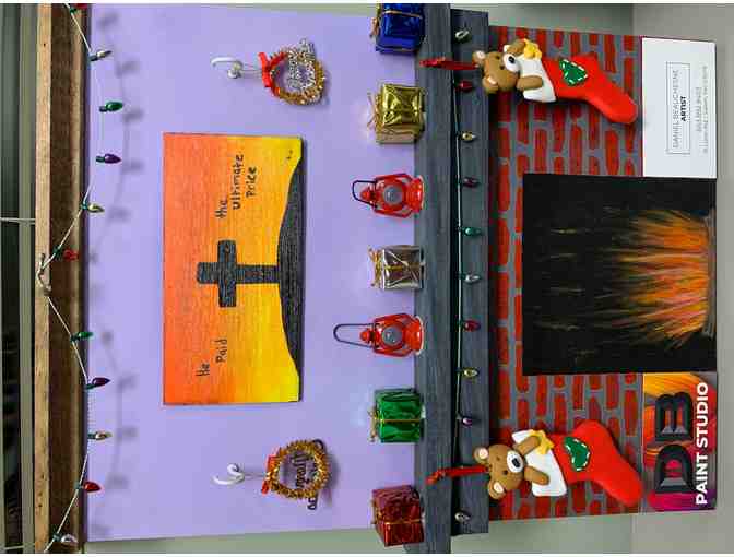 A beautiful hand-painted Christmas mantle. A beautiful addition to your holiday decor. This piece was painted by one of our volunteers and donated to the Festival of Trees.