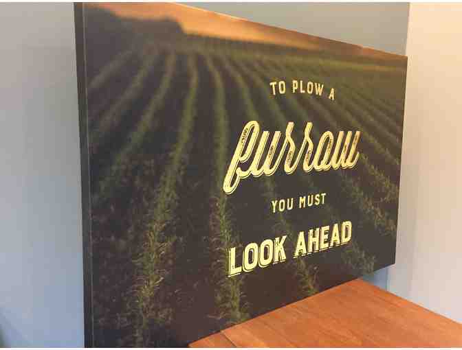 Custom Designed Wrapped Canvas (20x30) with inspirational quote, "To plow a furrow, you must look ahead"