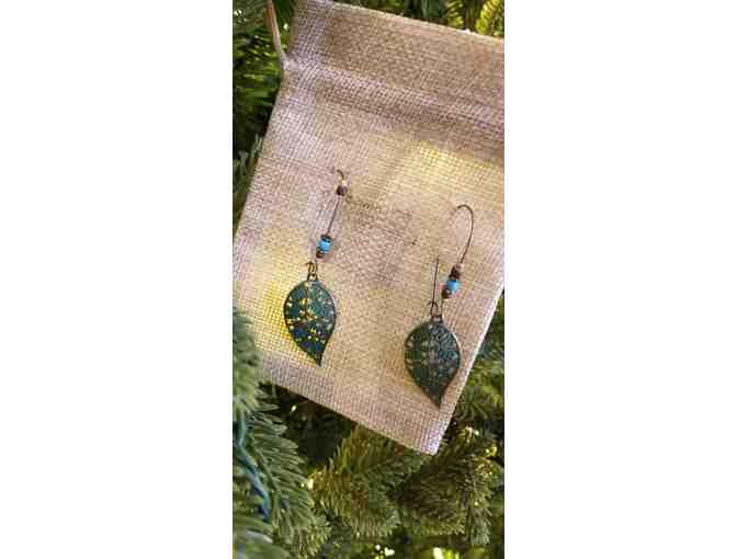Beautiful earrings handmade in Colorado. Metal with beautiful turquoise patine.