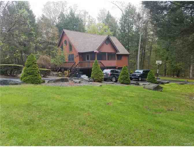 There are 3+ bedrooms (king, full, twin over full bunk) and 3 baths, with finished downstairs family room and sofas to sleep upto 14. This is great for a family get-together or a friends' weekend! Surrounded by trees, 100 miles from NYC, you can have a great winter vacation with a skiing & tubing minutes away at Holiday Mountain or a summer vacation with Delaware River rafting and ziplining at one of the East Coast's longest ziplines!