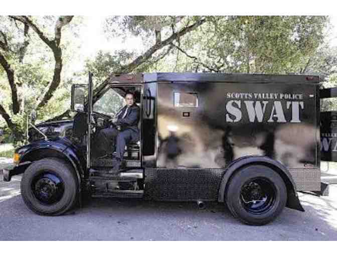 Be the highest bidder on this and win a before-school, personalized tour of the Scotts Valley Police Department for your child and up to 5 friends and then a RIDE TO SCHOOL in the SVPD SWAT vehicle. Woah!