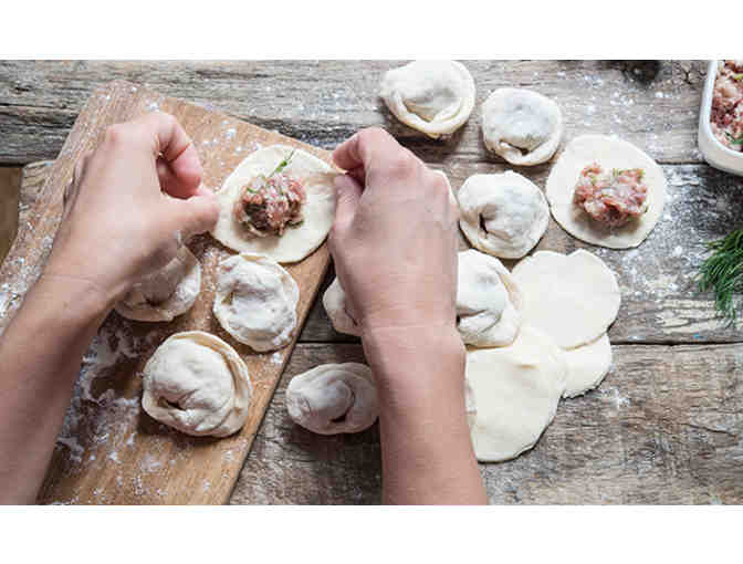 In this 2-3 hour in-home lesson, Sylvia will teach you techniques to make your own dumplings and dipping sauces at home. Learn to fold and form dumplings using ready-made skins, and also learn to make homemade dumping skins from scratch. Sylvia will work with the winner to offer a vegetarian or meat choice option for about 100 dumplings.
