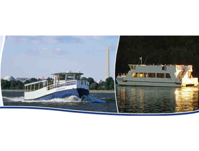 Two roundtrip Alexandria/National Harbor Water Taxi tickets with your choice of departure from either the Wharf, Old Town Alexandria or Georgetown. You will be treated to sights of Washington's majestic landmarks, such as the Lincoln Memorial, the Jefferson Memorial, the Washington Monument, and the Kennedy Center. Water Taxi makes it possible to visit the other side of the river for a bit of shopping and dining, and catch a later trip back to your original point of departure.