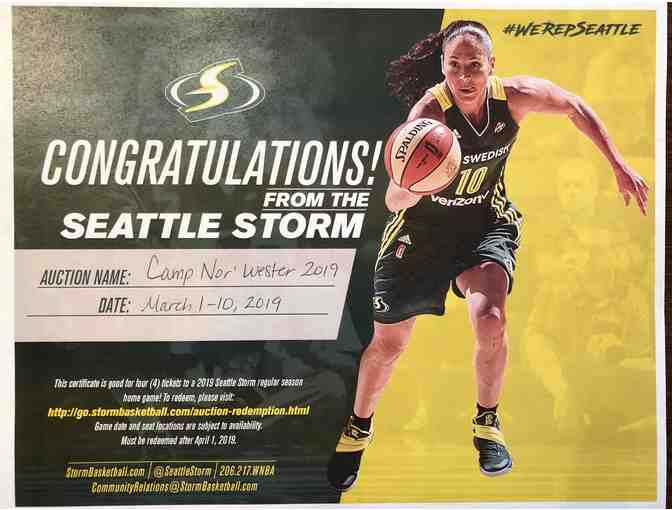 The winning bidder will receive a voucher that can be exchanged (after April 1, when ticketing opens) for any regular-season game. See the home schedule here, and note that, since the Storm are the defending champions and since--due to construction--most home games will be played at the smaller arena at the University of Washington, you will want to redeem your certificate early to ensure seating.