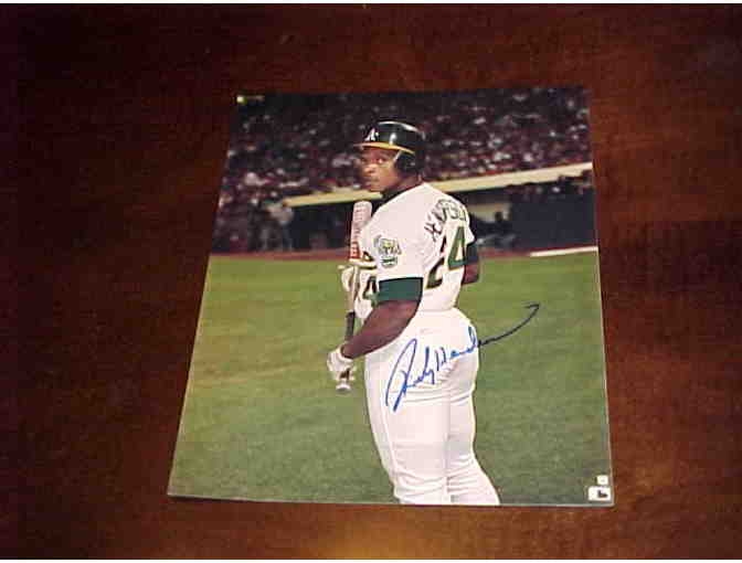 Oakland A’s Rickey Henderson Autographed Baseball Photo. Comes with certificate of authenticity.