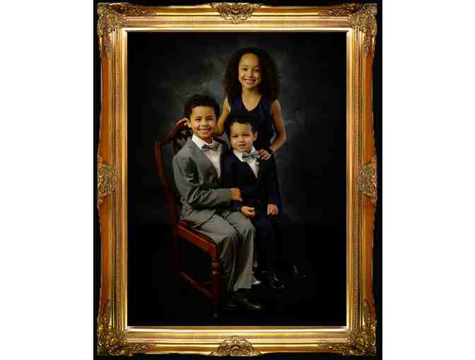 Create a lasting family memory with a fourteen inch commissioned canvas fine art portrait with hand artistry from Sanders Fine Portraits.