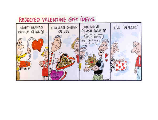 What did you get for Valentine's Day? Hope it was none of these "not so great" ideas as featured in Toon Trivia. But this cartoon would actually make a great gift; it measures 8-1/2" x 11".