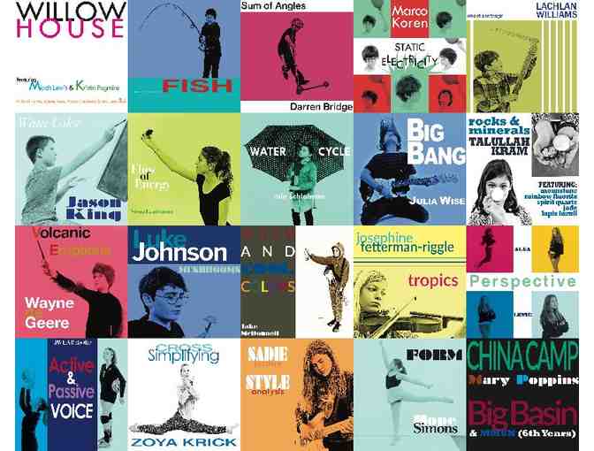 The Willow House class project is based on the iconic design of the 1950’s & 60's Blue Note Records jazz album covers. Each student designed their own 12”x12” album cover after studying the work of renowned Esquire graphic artist, Reid Miles. Each student’s album cover title is based on an Upper El class lesson name. The class then arranged the 20 individual covers into a unique modern work of art.