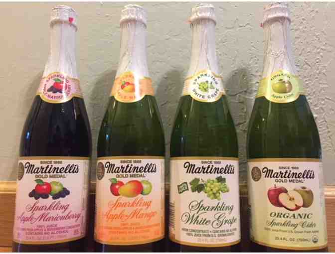 Includes four 25.4 FL. OZ. bottles of Martinelli's sparkling cider/juice (White Grape, Apple-Marionberry, Apple-Mango, and Organic Sparkling Apple cider).  Yum!