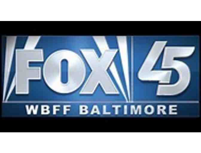 You and seven guests are invited to explore Behind-the-Scenes of FOX45 Morning News. Observe the live broadcast and meet FOX45 Morning Anchors Patrice Sanders, Tom Rodgers, and Megan Gilliland. Visit the newsroom and master control and learn how FOX45 brings you local news all morning! You'll have a unique opportunity to take your photo as a "future FOX45 reporter" as you sit at the anchor desk, in Traffic Tracker, or Weather Authority Center.
