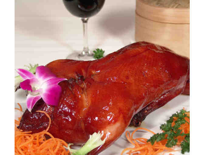 The winning bidder of this auction will enjoy Enjoy a whole Peking Duck, carved tableside, at The Peking Gourmet Inn. Their duck is simply one of the restaurant's centerpiece offerings. Your Peking Duck will be served with home-grown jumbo spring onions, 12 pancakes and homemade plum sauce. Serves 2-4 people.