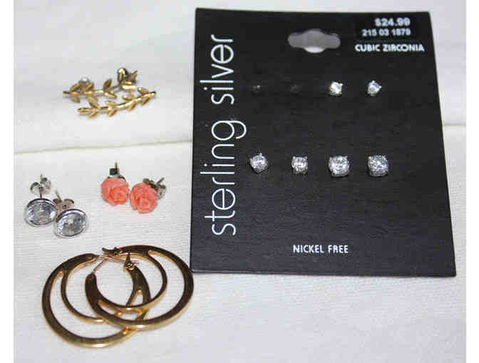 1. Three CZ stud pierced earrings with .925 setting and stainless steel ear clutches. - Nickel Free