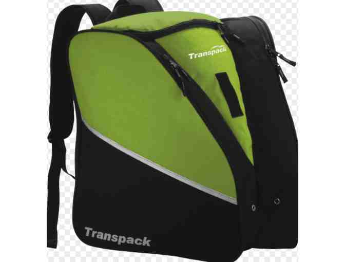Transpack XT PRO boot, helmet, and gear backpack in kelly green. Side pockets hold boots and a roomy central compartment holds helmet, gear, snacks, and drinks!