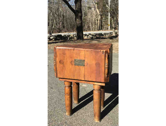 Check out a one-of-a-kind antique butcher block donated by David Ames from the Governor Oliver Ames Estate. The butcher block was made in Boston, Massachusetts by the William G. Bell & Company and includes a letter of authenticity from David Ames who donated it. The letter states: