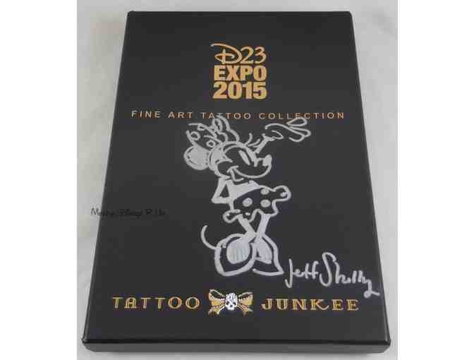 This is the official Disney tattoo kit from Tattoo Junkee for the 2015 D23 (Disney) Expo. It features 7 beautiful, unique temporary tattoos that were created by different Disney artists, inspired by Mickey, Minnie, Mulan, Tinker Bell, Pocahontas, Lion King and Stitch. Each of the seven tattoos has original Disney artist autograph. They range in size from 3" to 7".  Autographs include: Jeff Shelly, Kim Kha, Steven Andrews, John Quinn & Anthony Whitfield