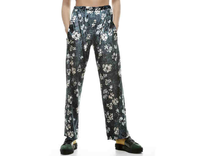 Velvet Floral print straight leg pants, rubber waistband. Inseam 29" Size M