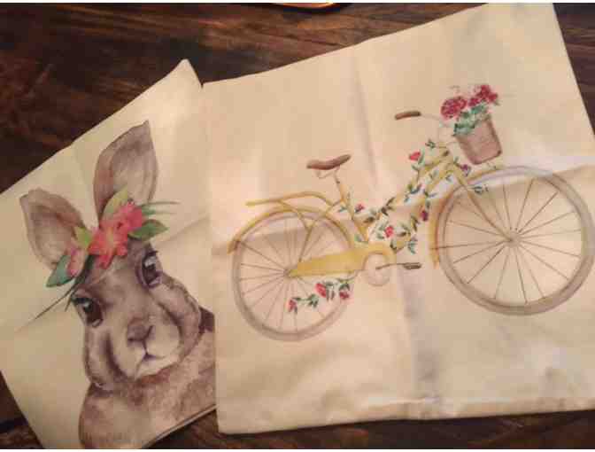 Celebrate Spring with Two Beautiful Pillow Covers! Bunny & Vintage Bike!