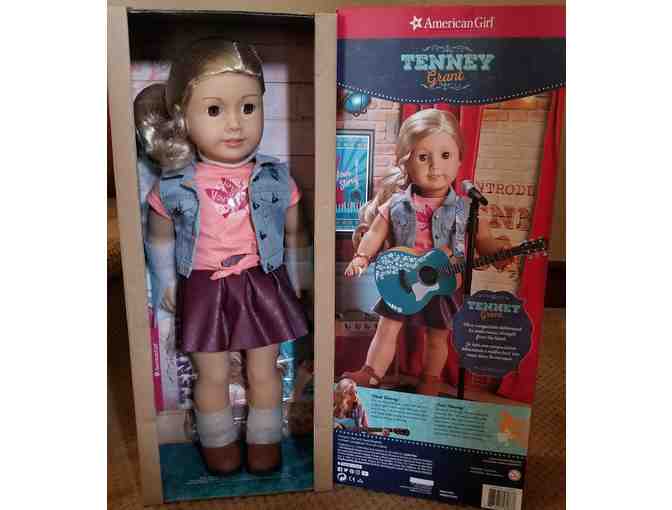 - 18" Tenney doll with light brown eyes that open and close, freckles on her nose, and long, curly blond hair.