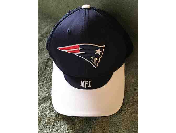 1. Patriots official NFL adjustable cap, navy blue with a white bill, raised embroidered logo, aerated mesh back.