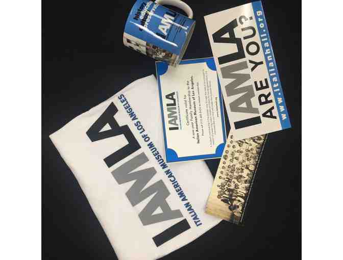 Description of donated items: • One (1) Family Membership to the Italian American Museum of Los Angeles. This Membership includes a choice of select IAMLA merchandise, subscription to IAMLA newsletter, invitations to special events, and free/unlimited museum admission. • One (1) IAMLA T-Shirt • One (1) IAMLA Mug • One (1) IAMLA Bumper Sticker • One (1) IAMLA Bookmark