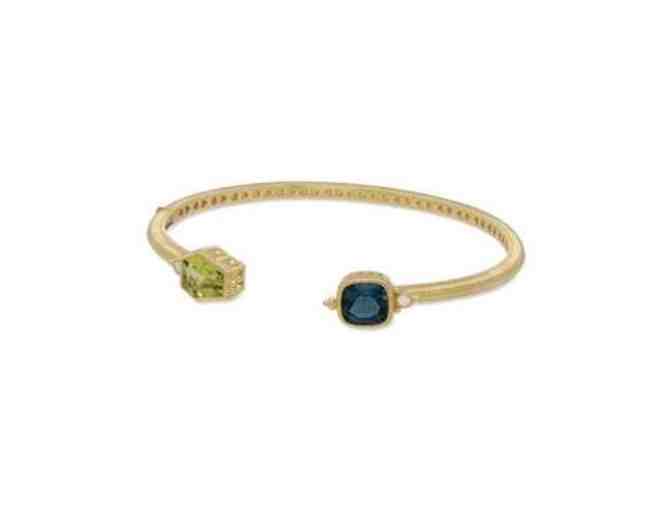 18K Gold Peridot & London Blue Topaz Cuff With Bezel Set Diamond Accents 0.05