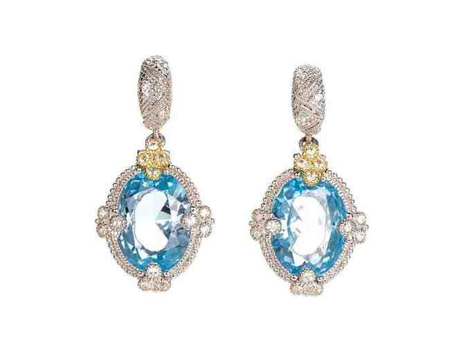 18K Gold and Sterling Silver Blue Topaz Drop Earrings, White Sapphires