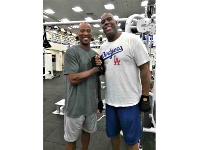 2 on 2 Basketball Game with Magic Johnson and Byron Scott and a signed basketball