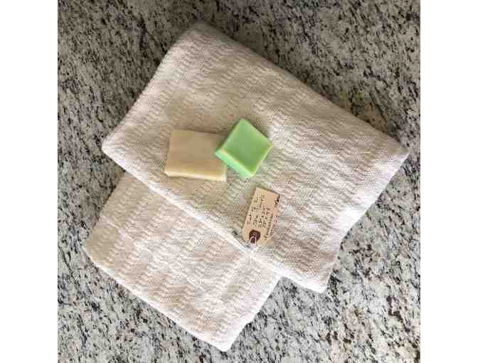 Beautifully hand-woven spa towels by local Kennebunk crafter and volunteer Lynn McCarthy.