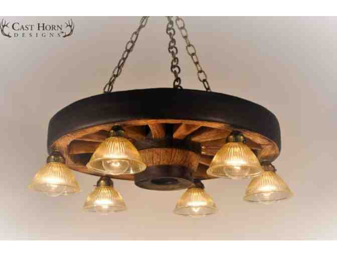 Cast Horn Designs - Small Wagon Wheel Chandelier donated by Bob & Donna Cunha