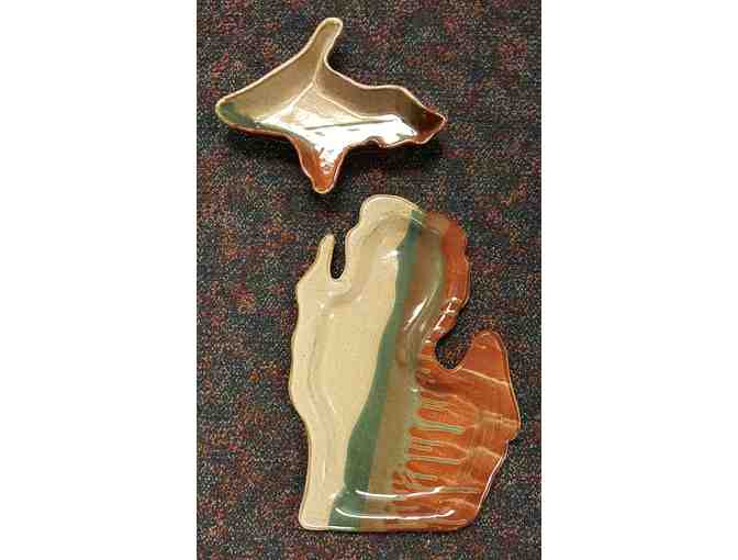 Upper and Lower Michigan platters donated by Sturgeon River Pottery