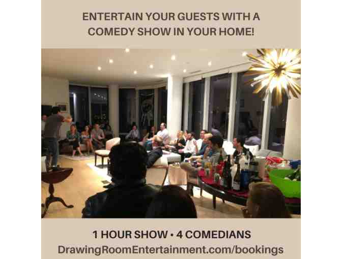 Tired of the same dinner parties? The same idle chatter? Love to laugh, but don’t want to go out to a show? Bring the entertainment to you in the comfort of your own home! See NYC’s top comedians from HBO, Comedy Central and FOX TV for a private show for you and your friends. You provide the guests and food and we provide the entertainment in your drawing room. 4 Comedians 1 hour of comedy. Adult only shows are recommended though family friendly shows are possible. For more information: www.DrawingRoomEntertainment.com