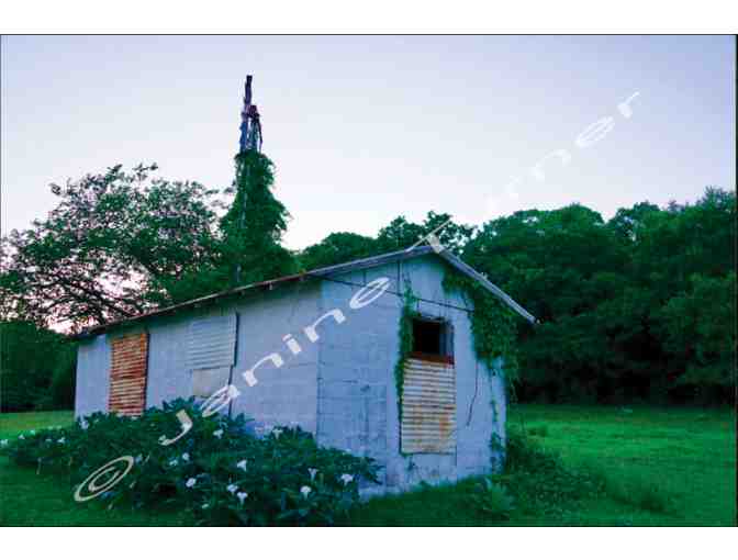 This canvas print displays Janine Turner's remarkable eye for capturing the wonder of nature in its finest, awe-inspiring detail. From her debut photography collection, this still life, depicting original 20th century structures on Janine's ranch, is a perfect rural addition to your home. Janine's photography seeks to encapture God's presence in pure, untouched nature. Taken June 2018 and autographed.