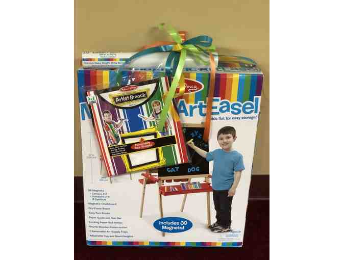 Melissa & Doug Deluxe Magnetic Art Easel with Melissa & Doug art essential artist smock and roll of 18" x 75" easel paper.